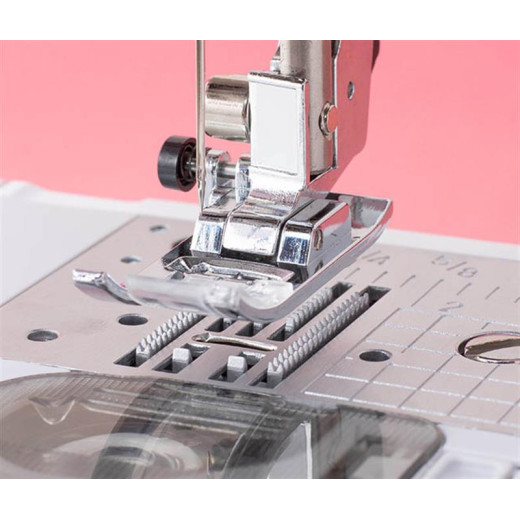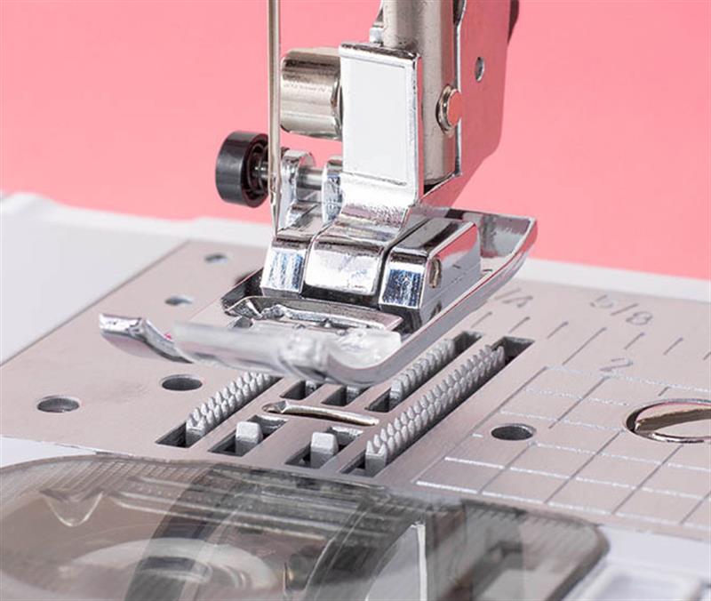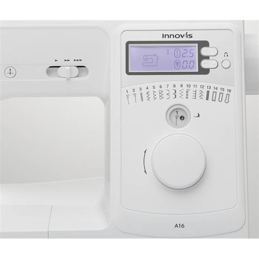 Innov-is quality stitching in a sturdy, easy-to-use sewing machine. Includes 16 stitches, 3 one-step buttonhole styles. Sew sheers, cottons, stretch fabrics and denim smoothly and evenly. Save time with auto needle threading and auto reinforcement at the beginning and end of seams. Secure your thread in place at the beginning at end of stitching without bulk using the lock stitch button. 850 stitches per minute. Optional wide table for more room to support larger projects.