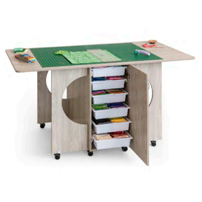 This Collapsible cabinet with a wide working space is the second largest unit in the Tailormade range. This set up will suit a hobby enthusiast with a mid-sized studio. With the mobility of the storage caddy that can be placed where you want comfortably or have it as a place to setup your overlocker within arm’s reach.