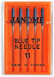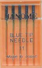 A Janome specific needle, the Blue Tip has a unique design with a pierce point plus a slightly longer than normal scarf to cure skipped stitches and puckering in any problem fabric especially synthetics.