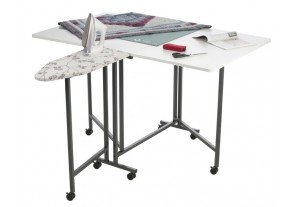 Our newest craft table offers a budget friendly cutting table with built in ironing board.